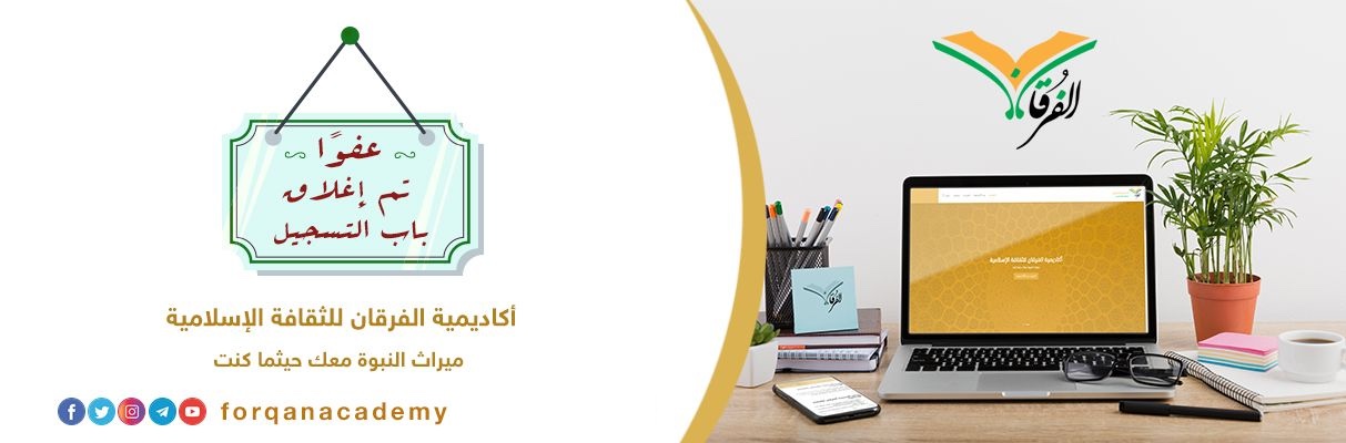 تعلن أكاديمية الفرقان للثقافة الإسلامية، عَن إغْلاقِ بابِ التَّسْجيلِ بصفوفِ الدفعة السادسة، للفترة الدراسية القَادِمِة، سَائلينَ اللهَ تعالى لكم جميعًا السَّدادَ، ومتمنِّين لمن فاتته فُرْصةُ التسْجيلِ لهذه الفترة الدراسية مَزيدًا من الفَضْلِ والتوفيقِ، وأَنْ تُيسَّرَ لكم فرصةُ الانضِمَامِ في المرَّاتِ القادِمَةِ بإذنِ اللهِ تعالى. واللهُ وليُّ التَّوْفيقِ.